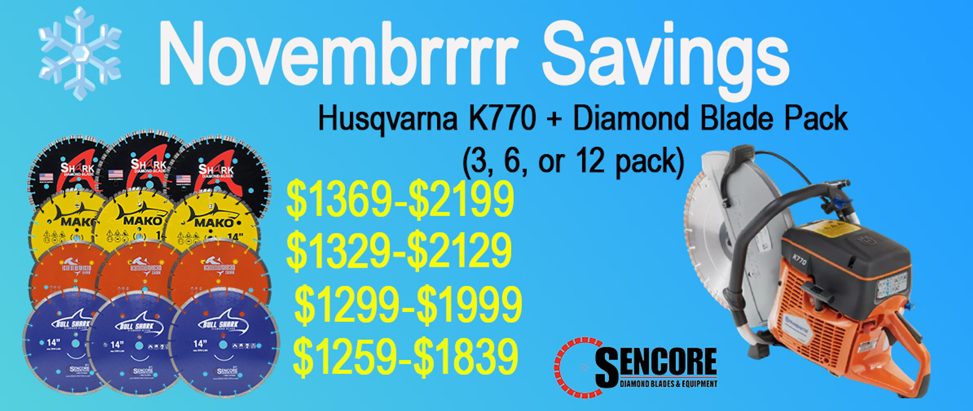 $1,699.00 - $4,199.00Seeing double?Nope — it’s just our Black Friday Special coming in HOT. For a limited time, score 2 Husqvarna K770 14" Saws + 2HUSQ K770 2 + SEN14XXX 20