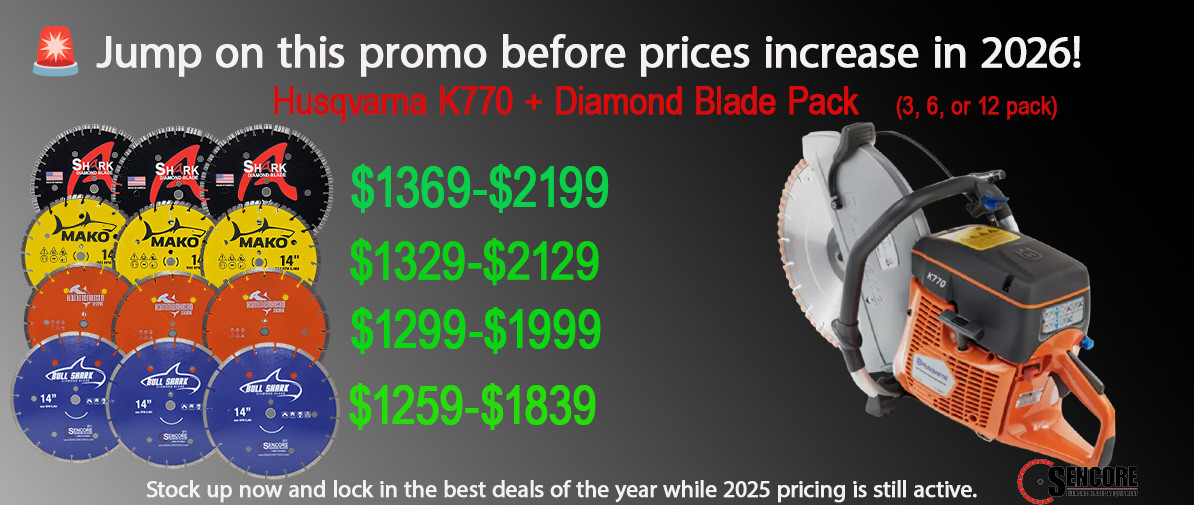 $1,259.00 - $2,199.00Hey contractors! 2026 price increases are on the way.Jump on this promo today and lock in the best pricing before the end of the year.Your wallet will thank you later.HUSQ K770 + SEN14 (XXX)-1 -